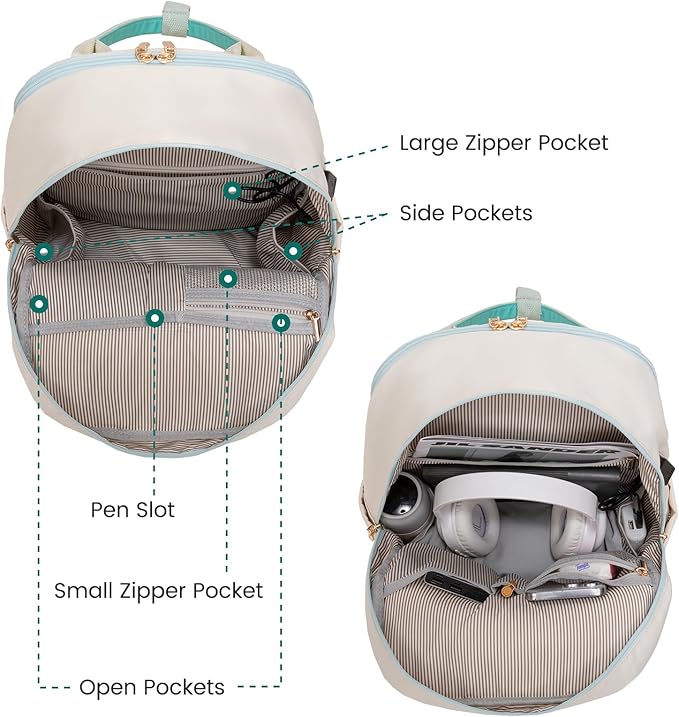 - đON-THE-GO CONVENIENCEđ â With a luggage strap on the back, it allows the backpack to securely fit on the handle of a rolling suitcase - ease the burden in your journey. Back hidden pocket sits up against the wearerâs body. Itâs difficult to steal your valuables without you feeling it. Let's travel.