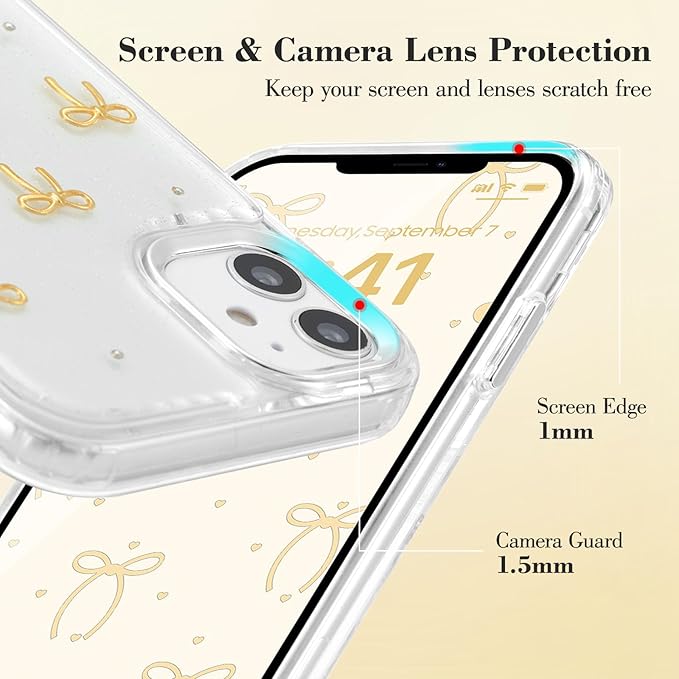 - Cute Fashionable Bow Design: Handmade 3D stereoscopic bow design, dotted with silver beads, the back of this case is a sparkling transparent design, which not only shows the original appearance of the phone well, but also gives your phone a more stylish, lovely and exquisite kawaii appearance, adding unique charm to your phone. Using the glue drop sealing technology, the bow beads will not drop easily