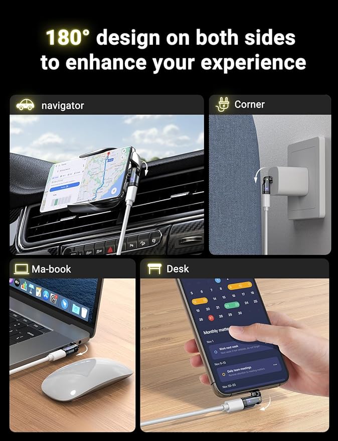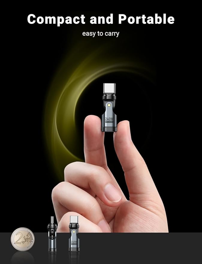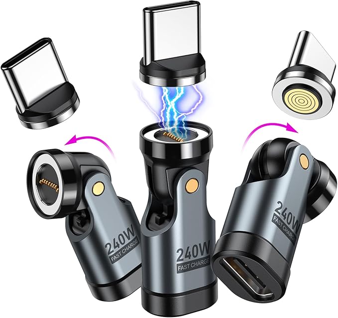 - šš„šš«š-ššš«šØš§š ššš š§ššš¢š š šØš«šš: Our 180 degree usb c adapter features top-tier magnets for a secure connection. Experience quick, one-second magnetic adsorption for hassle-free charging. The magnetic tip also allows for easy plug and unplug, reducing the risk of damage to your USB-C devices.