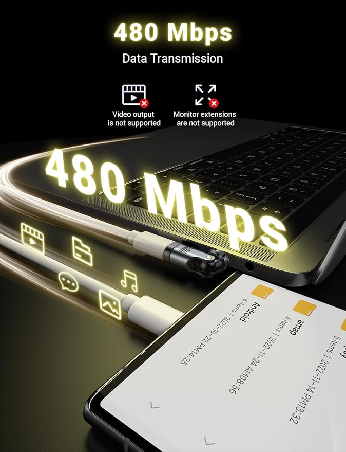 - šššššš šššš: Experience seamless data transfer with our Magnetic USB-C Adapter, compliant with USB 2.0 standards. Please note, video output is not supported, and it is not designed for 4K or 8K functions. Connecting a USB-C hub is not recommended.