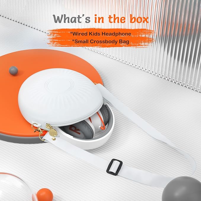 - [Comes with a Fun & Practical Silicone Carry Case] Includes a cute, kid-friendly silicone case, making it easy to keep headphones safe and organized. Designed for both boys and girls, it can be worn as a crossbody bag or handbag—perfect for school, road trips, and airplane travel.