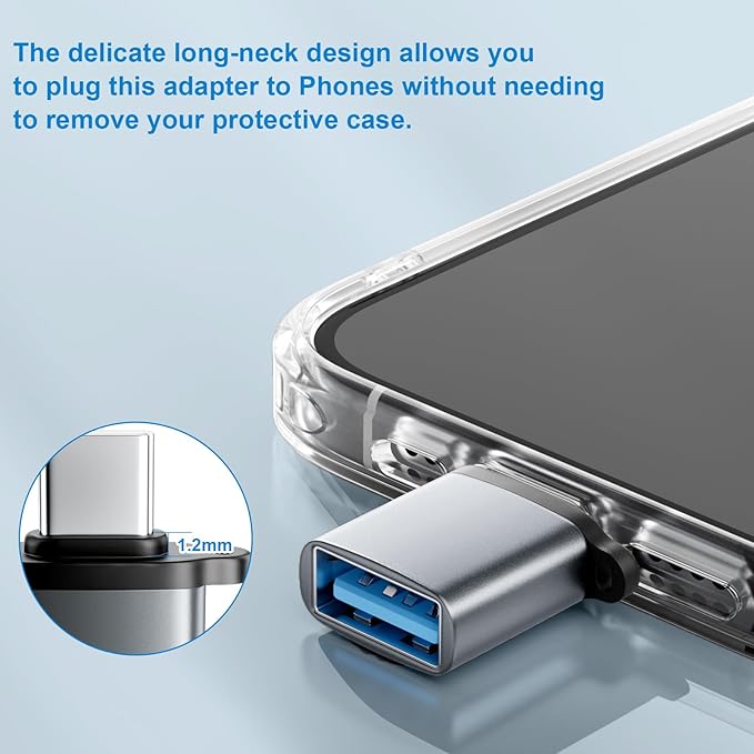 - 【Extended USBC to USB Devices】: This C to USB adapter effortlessly connect to iPhone 16/ 15, iPad Pro, MacBook Pro, MacBook Air, Samsung Galaxy, laptops, tablets, smartphones, cameras, and various other Type-C devices, and USB-A peripherals (flash drives, mouse, keyboards, printer, card reader, dongle, gaming controllers, charging cable etc.). This Type C adapter perfect for hybrid workflows between laptops, tablets, and accessories. OTG adapter Easy to Use,Plug and play, no driver required.