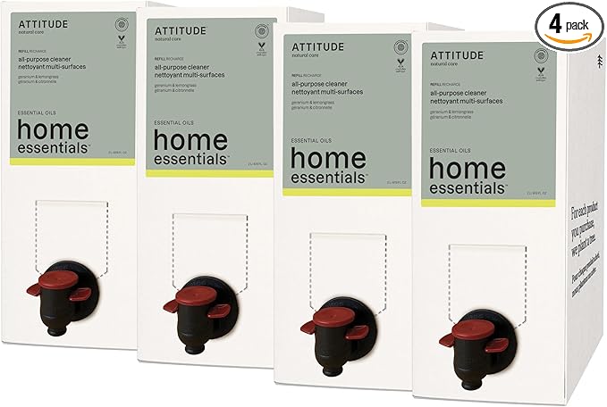 ATTITUDE Multi-Purpose Cleaner with Essential Oils, EWG Verified, Plant and Mineral-Based Ingredients, Vegan Household Products, Bulk Refill, Geranium and Lemongrass, 67.6 Fl Oz (Pack of 4)