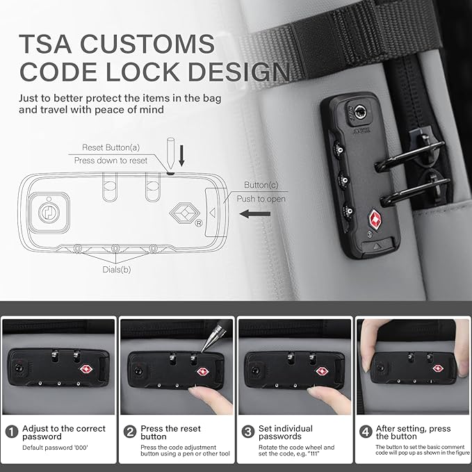 - 【Anti-Theft Design】In order to make your travel safer, The vacpack backpack adopts TSA customs anti-theft design. You can better protect the items inside your back pack vacuum and reduce the possibility of loss. The password operation setting of the TSA customs combination lock is very simple.