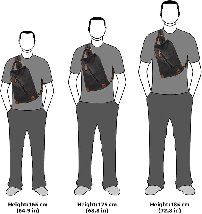 - [Compact yet Spacious] Exterior: 1 front zipper pocket and 1 zipper pocket on side and 1 buckle pocket on back; Interior: 1 main large compartment. Versatile canvas crossbody backpack has plenty of rooms for gadgets, wallet, umbrella, sunglasses and water bottle, etc. Easy access to small items, perfect for daily use or as a carry on luggage.