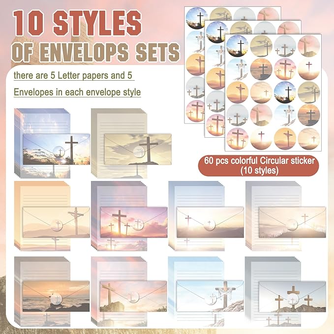 - Religious Stationery with Cross Paper Stationery Set: you will receive 50 stationery paper and envelopes letter sets, including 50 pieces of letter writing papers, 50 matching envelopes with 60 dot stickers; The sufficient quantity and rich designs cover your writing and sending needs