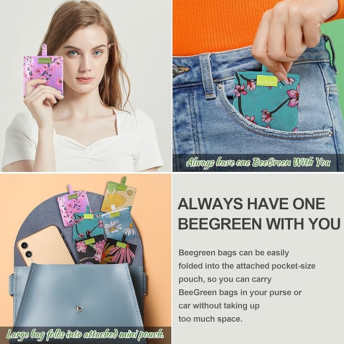 BeeGreen Reusable Grocery Bags Foldable Reusable Gift Bags Shopping Bag With Handles Polyester Grocery Tote Bulk Travel Tote Bag For Women Cloth Shopping Basket Washable Holiday Travel