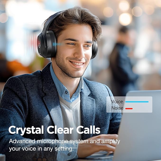- Crystal Clear Hands-free Calls: Advanced microphone system precisely filters noise for crisp, clear call performance. These active noise cancelling headphones with ENC tech can catch your voice accurately and block background noise for perfect clear calls. Vibeadio wireless Bluetooth headphones make stable clear Hands-free calls which is convenient for home office/study.