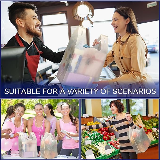 - Versatile Storage Bags: this set of 100 reusable T-shirt shopping bags features sturdy design, ideal for carrying groceries, fruits, clothes, books and more, caters to all your shopping needs while providing convenient storage solutions for travel, camping, and other activities
