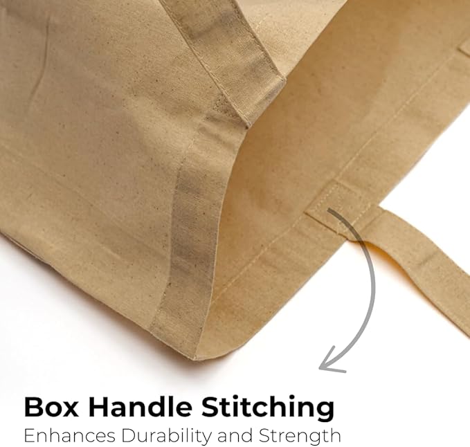 - Durable tote bags : Crafted from 100% natural cotton, these reusable grocery bags are built for durability. Featuring lock stitching inside and compacted stitching throughout, including cross-stitching at the handles, they boast maximum strength and bearing capacity compared to competitors. With two reinforced handles, these bulk tote bags offer convenience whether carried by hand or worn on the shoulder, making them sturdy and reliable for all your daily needs like for shopping store.