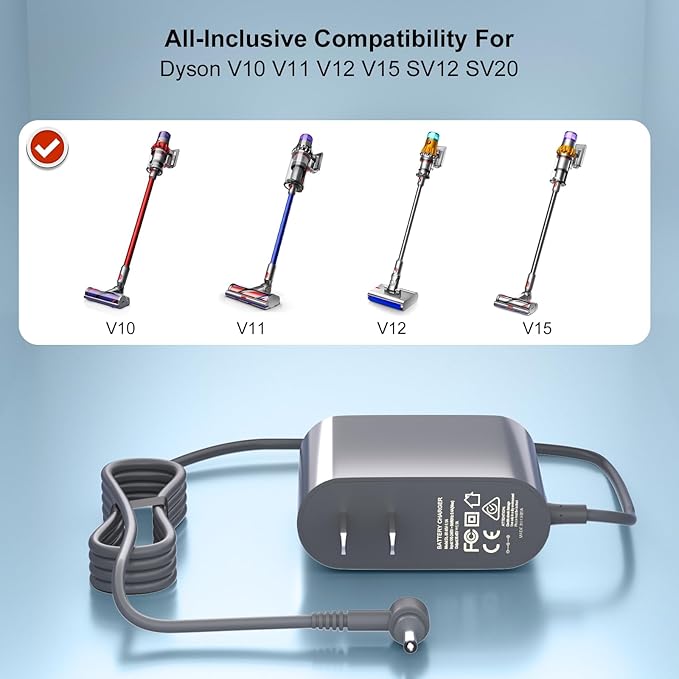 - Compatible Devices : Replacement for Dyson charger for Dyson Cyclone V10 V11 Motorhead、Animal、Absolute、vacuum cleaner;dyson V12 V15 S11 SV12 SV14 SV16 SV20 SV20 SV22 Vacuum, Replacement for Dyson charger for Dyson Cyclone V10 V11 Motorhead、Animal、Absolute、vacuum cleaner;dyson V12 V15 S11 SV12 SV14 SV16 SV20 SV20 SV22 Vacuum,