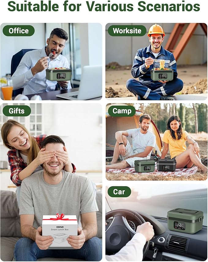 - [Great Gift for family and friends] -- The portable food warmer lunch box is an excellent gift for blue-collar workers, office workers and outdoor enthusiasts who want a hot meal on the go. It ensures a warm lunch during long work hours or outdoor adventures like camping or traveling. A thoughtful and practical gift that keeps your loved ones well-fed, wherever they are.