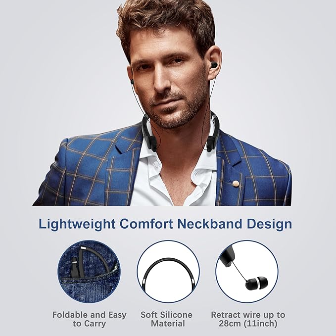 - [Comfortable Neckband Design with Vibration Reminder]: The ergonomic neckband design ensures a comfortable fit around your neck, enjoy music on the go. When a call comes in, the vibration reminder alerts you so you never miss a call even in noisy environments and the earplugs are not in your ears, really sets you hands free.