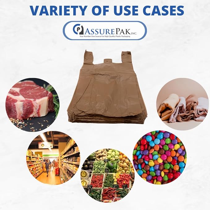 Brown HDPE T-Shirt Plastic Bags for Retail, Groceries, Merchandise, Convenience Store, Supermarket, Restaurant - 1/6 BBL, 11.5"X6"X21" - Pack of 200 Bags, 13 Microns - Unprinted (Brown)