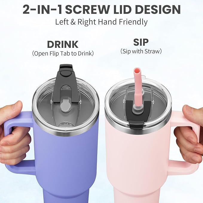 - 【100% Leakproof Design】Upgraded 2 in 1 lid creates an airtight seal for leak-proof travel, sip, or straw use without spills. Enjoy your beverages on the go.