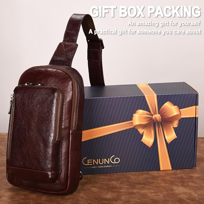 - GENUINE LEATHER SLING CHEST BAG – This sling chest bag for men and women was made of genuine leather, combine with comfortable cotton lining and heavy duty metal zippers, this leather bag is suitable for hiking, cycling, and daily travel