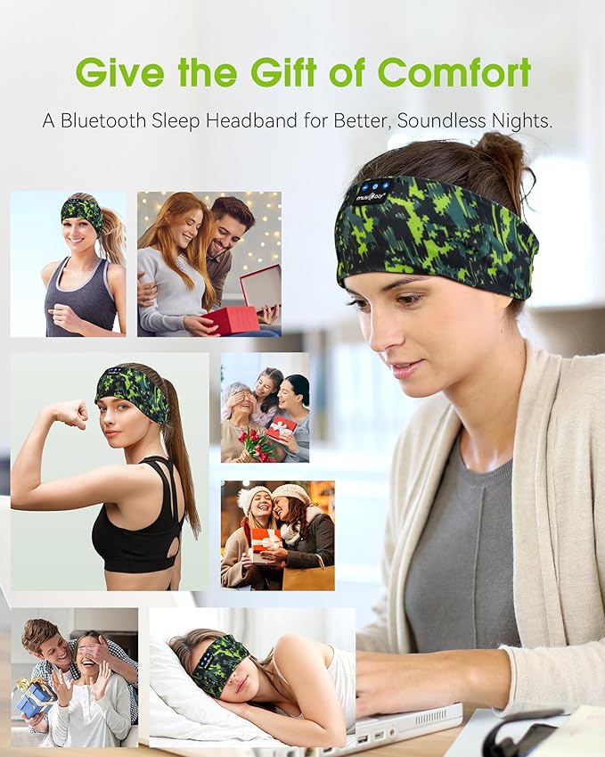- Bluetooth Music Headband - MUSICOZY Sleep Headphones offer Bluetooth 5.4 and immersive stereo sound. With advanced Bluetooth 5.4 technology, the Bluetooth Headband is more compatible with electronic devices. Alongside 40mm composite drivers, these wireless music headband headphones deliver pure and balanced audio output with loud sound, rich bass, clear midrange, and balanced treble. This results in extraordinary clarity and detail for all music genres.