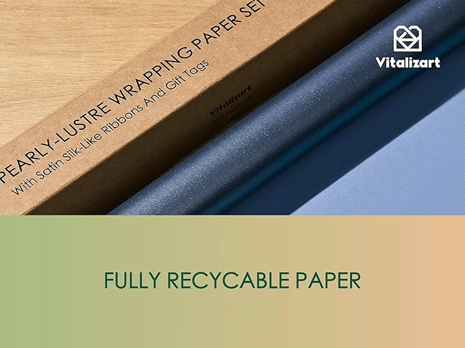 - Recyclable & Safe: The pearlescent texture comes from water-based ink jet printing, making our wrapping paper safe to use.