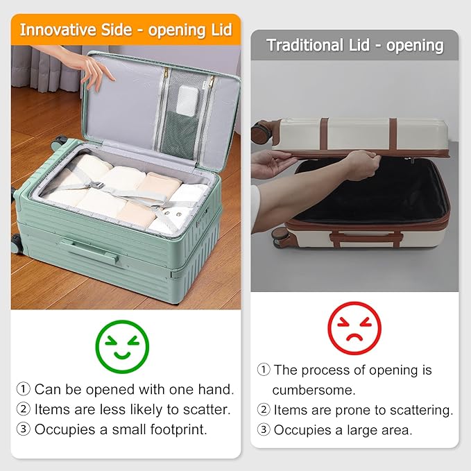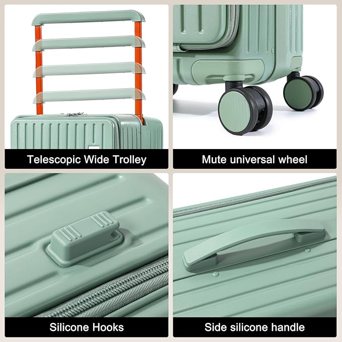 - Convenient Design: The suitcases with wheels adopts a unique front opening cover design, allowing you to easily access commonly used items during the journey. The centered retractable wide pull rod can meet the needs of different heights, and it is smooth and effortless to push and pull.