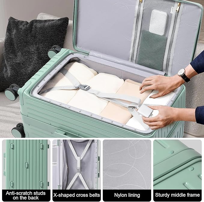 - Meticulous Storage: The interior of the hard case 24 inch checked luggage is equipped with X-shaped cross belts, which can effectively fix the luggage and avoid clutter of items. At the same time, the front opening cover of the luggage suitcase contains multiple storage pockets. The reasonable interior layout makes your storage more effortless and efficient