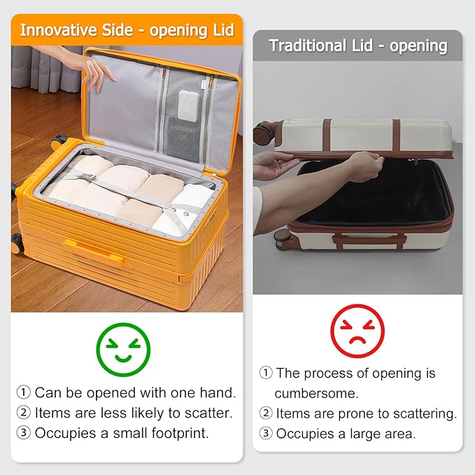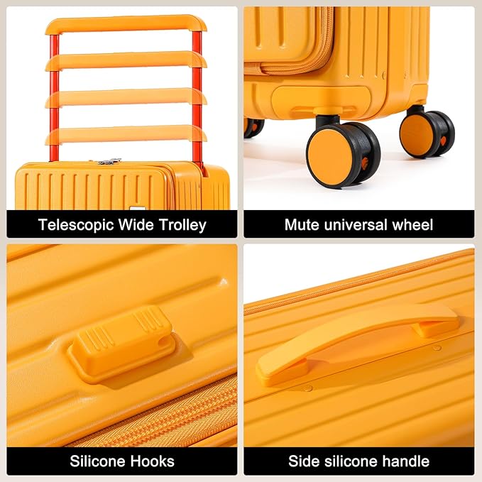 - Convenient Design: The suitcases with wheels adopts a unique front opening cover design, allowing you to easily access commonly used items during the journey. The centered retractable wide pull rod can meet the needs of different heights, and it is smooth and effortless to push and pull.