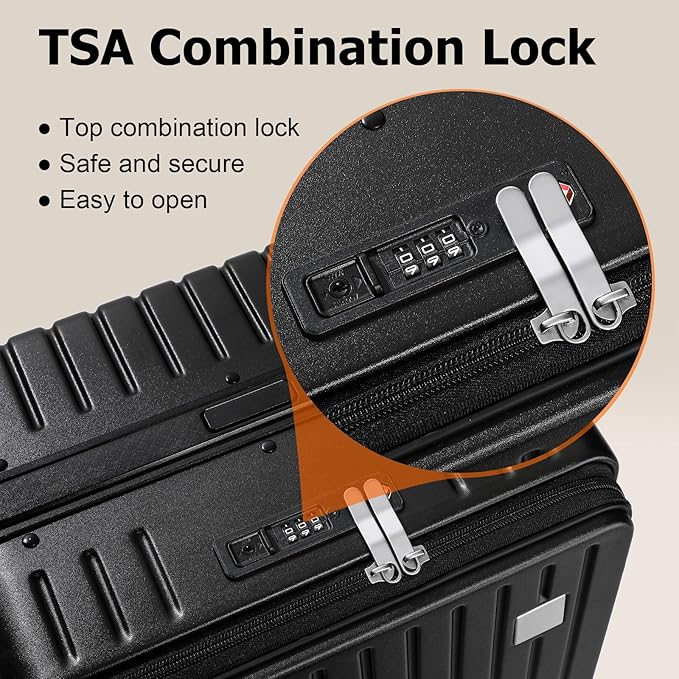 - Security Assurance: The carry on luggage hard shell is equipped with an embedded TSA lock to ensure the safety of your luggage. The side stud hook is convenient for hanging small items, increasing the storage space and making it more convenient for you to access.