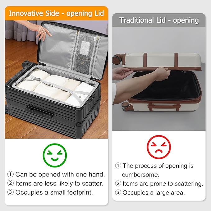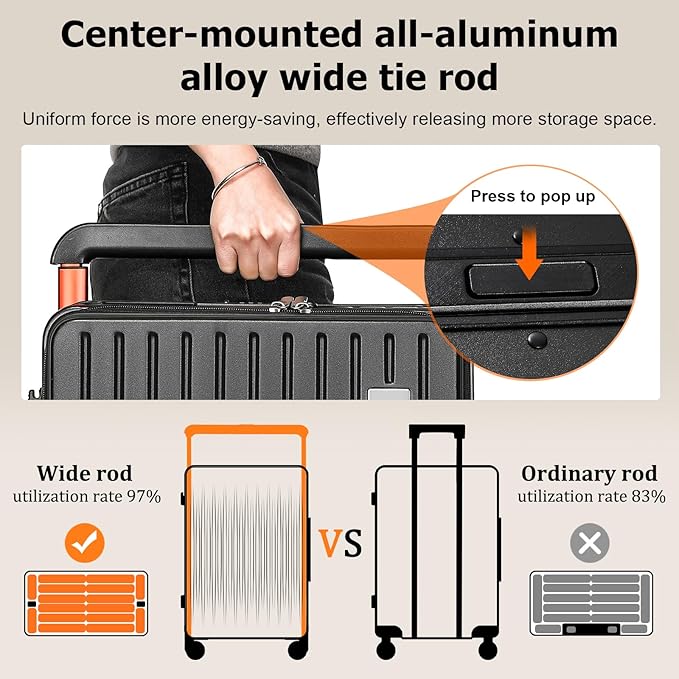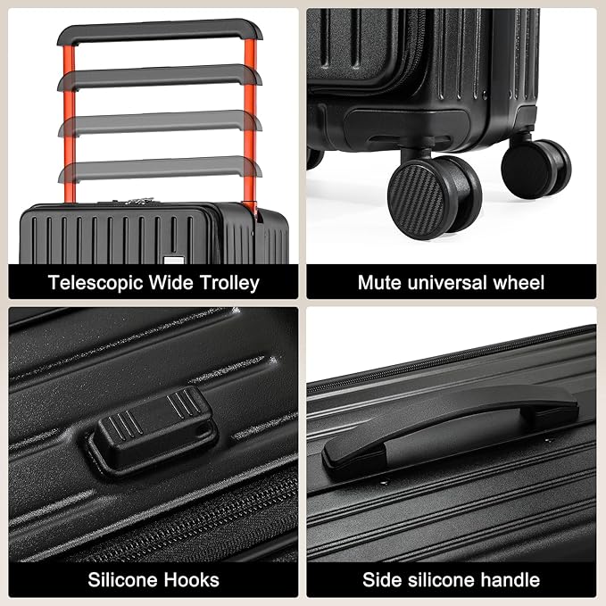 - Convenient Design: The suitcases with wheels adopts a unique front opening cover design, allowing you to easily access commonly used items during the journey. The centered retractable wide pull rod can meet the needs of different heights, and it is smooth and effortless to push and pull.