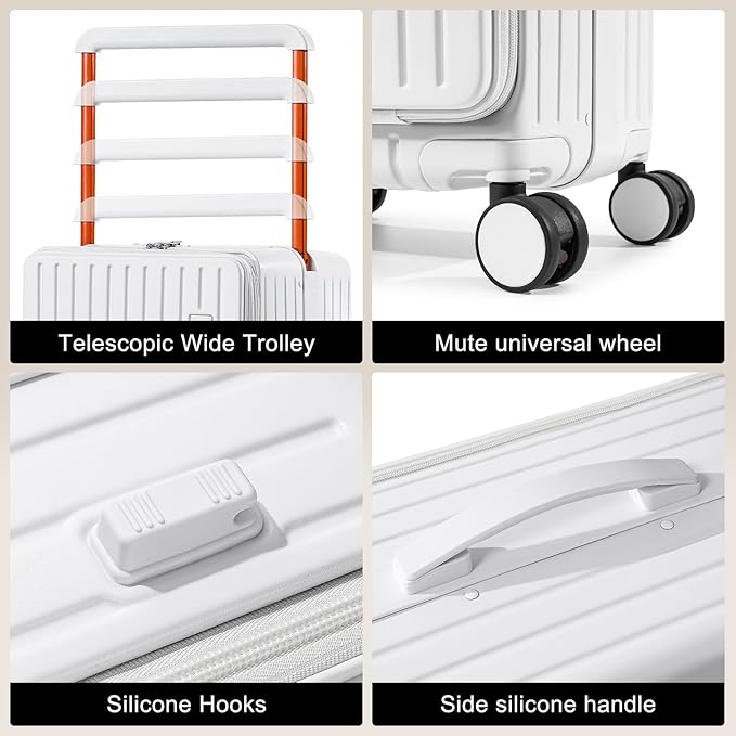 Joyway Hardshell Carry on Luggage with Front Pocket, Lightweight Hardside 20 Inch Suitcase with Spinner Wheels and TSA Lock (White, Carry on Luggage-20 Inch)