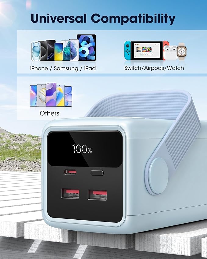 - LED Digital Display and Portable Strap Portable Charger -- The top of the cell phone charger power bank is equipped with a soft, portable handle, making it easy to carry and convenient to stow in your backpack or hold in hand without any burden during outdoor use. Portable battery pack also features a precise LED digital display that shows the remaining power percentage in real time, ensuring you have peace of mind while charging on the go