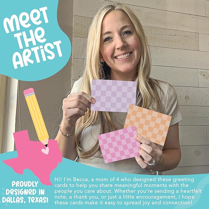 Hadley Designs Blank Cards and Envelopes 4x6-24 Blank Note Cards with Envelopes, Notecards Stationery Sets, Notecards Bulk, Stationary Sets, Note Paper Stationery, Checker Pretty Stationary