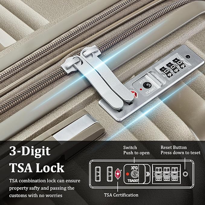 - TSA Locks and Military-Grade Security: TSA-approved combination locks allow agents to inspect without breakage. Reinforced with double-layered anti-burst zippers and scratch-resistant textured PP shells to protect valuables in transit.