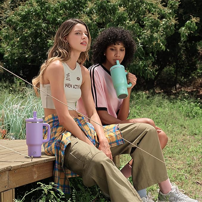 40 oz Tumbler with Handle and Straw: Stainless Steel Insulated Tumbler Keeps Cold for 24 Hours, Leakproof Travel Cup Fits in Cup Holder and BPA-Free, Lavender