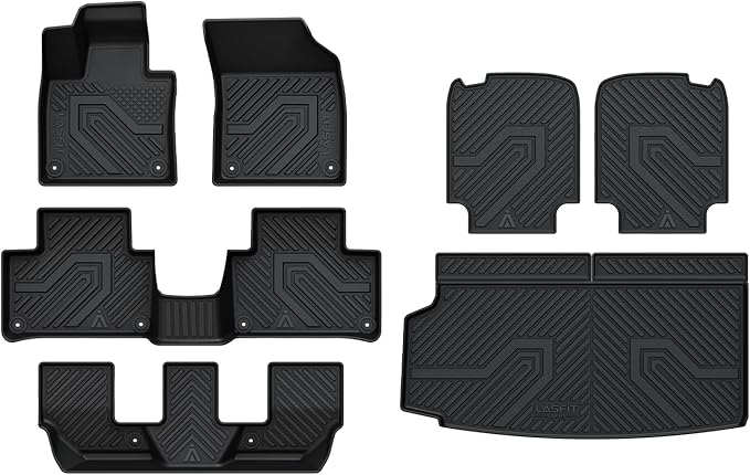 LASFIT Floor Mats & Cargo Mat & Backrest Mats for Volvo XC90 2016-2026 (Only for 7 Seats & PHEV) All Weather TPE Mats Custom Fit Floor Liner for XC90 1st & 2nd & 3rd Row Car Mats & Cargo Liner, Black