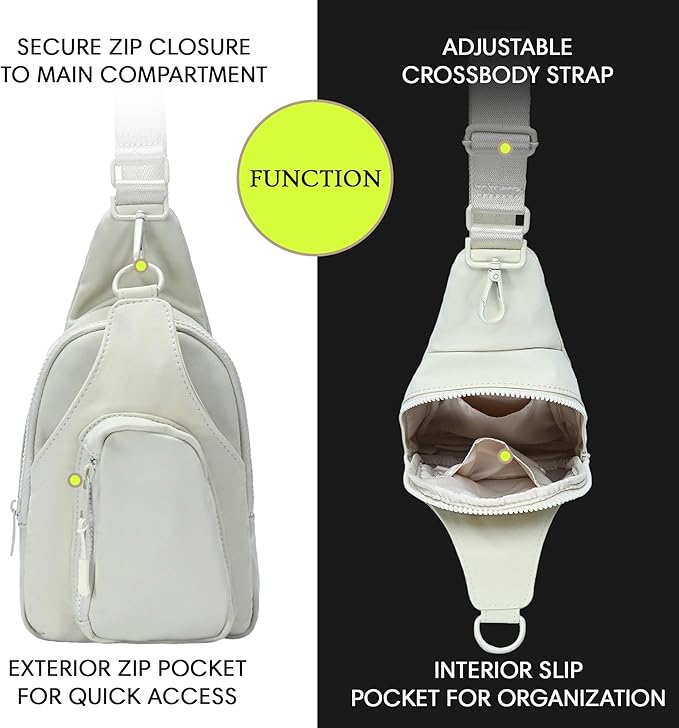 - SECURE AND AMPLE STORAGE: Despite its small size, these 7in x 2.5in x 12.5in sling bags for women have plenty of room for everyday supplies. The interior and exterior pockets are wisely positioned, ensuring easy access to belongings, such as your phone, keys, or makeup. These designer sling bags have slide pockets, ideal for keeping smaller items sorted and quickly accessible. These anti theft crossbody bags for women are sealed with a sturdy zipper, keeping your stuff safe and secure.