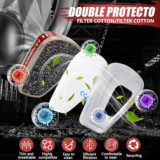 - [Wide use] The gas mask can effectively block paint, fumes, pollen, dust, chemicals and other particles as well as organic steam/gas. Suitable for painting, welding, cutting, grinding, woodworking, desert, mining, flour mill and other working environments.