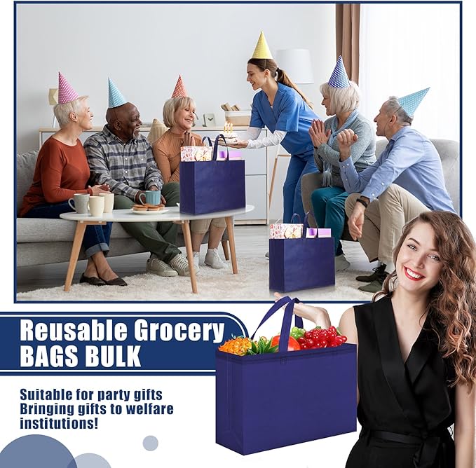 - Spacious and Versatile: with dimensions of x about 16x6x12 Inch/40.5*15*30.5cm, these reusable grocery bags offer ample space for whatever you need to carry, be it groceries, clothes, books, gardening supplies or crafts; Their solid design makes them suitable for both home and commercial usage, companies or events like weddings, birthdays or parties
