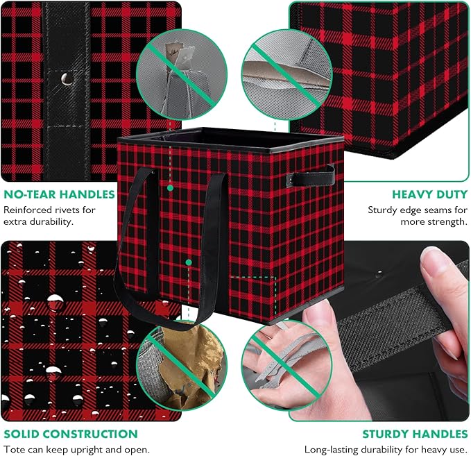 - Rigid Structure: The eco reusable grocery box is made of heavy-duty non-woven floral fabric (with water resistant coating) reinforced and stiffened with long lasting recycled cardboard insert on each side offering a rigid structure when opened.