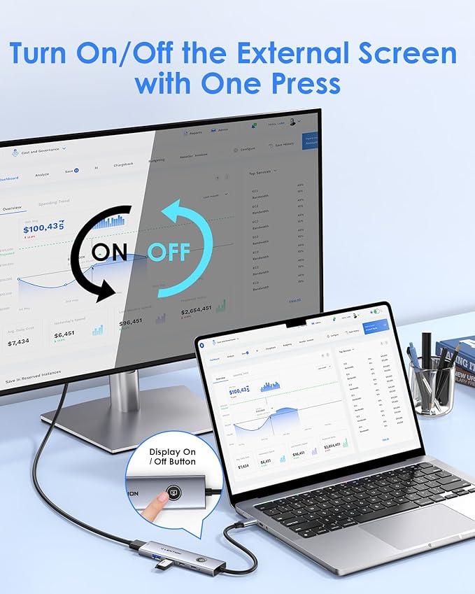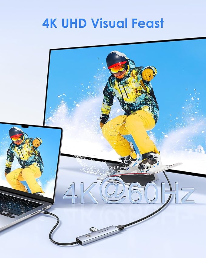 - 4K@60Hz HDMI with One-Click Screen Privacy: The USB C hub features a One-Click Display Control for Privacy to instantly turn off the HDMI-connected screen, offering quick privacy protection during office meetings, gaming sessions, or personal use. Stay in control of your display anytime. ๐๐จ๐ญ๐: ๐๐๐-๐ ๐๐๐ฏ๐ข๐๐๐ฌ ๐ฌ๐ก๐จ๐ฎ๐ฅ๐ ๐ฌ๐ฎ๐ฉ๐ฉ๐จ๐ซ๐ญ ๐๐๐ ๐๐ฒ๐ฉ๐-๐ ๐๐ ๐๐ฅ๐ญ ๐๐จ๐๐(๐๐ข๐๐๐จ ๐ญ๐ซ๐๐ง๐ฌ๐ฆ๐ข๐ฌ๐ฌ๐ข๐จ๐ง ๐๐ฎ๐ง๐๐ญ๐ข๐จ๐ง)