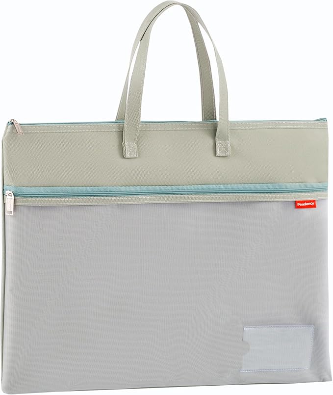 Pendancy Mesh Zipper Pouch A3 Size, Large Double Pocket Waterproof File Bag with Handle, 13x17 in Foldable Document Storage for Puzzle Project/Cross Stitch/Travel/Office(Advanced Green)