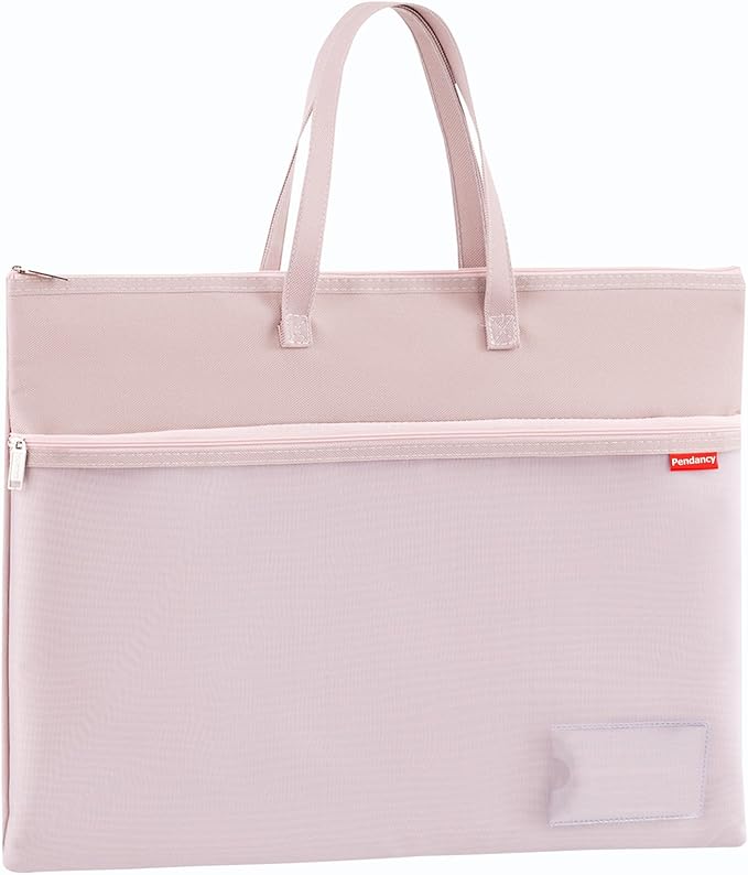 Pendancy Mesh Zipper Pouch A3 Size, Large Double Pocket Waterproof File Bag with Handle, 13x17 in Foldable Document Storage for Puzzle Project/Cross Stitch/Travel/Office(Advanced Pink)