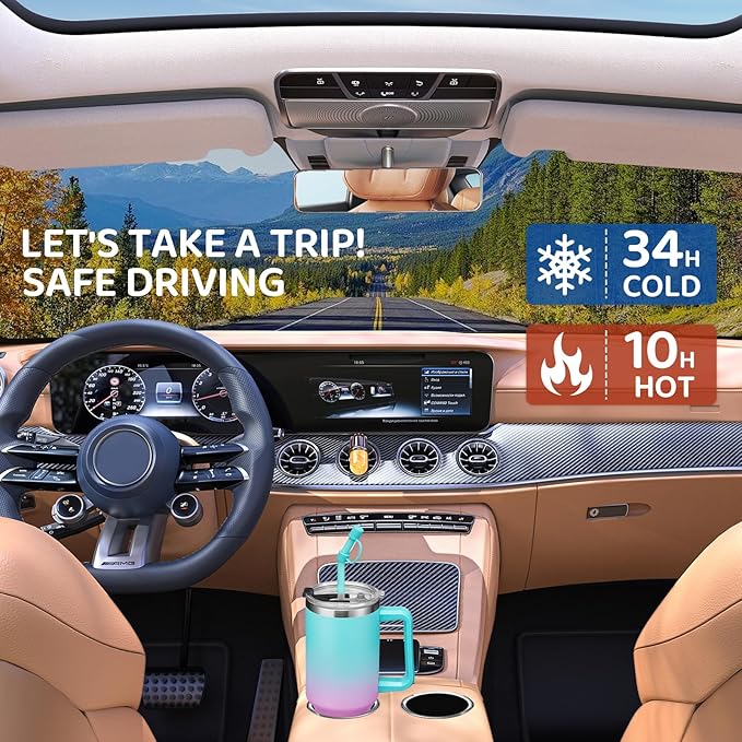 - 【Cup Holder Friendly】Large 40 oz tumbler capacity with tapered base fits most car cup holders for daily commutes or road trips. Perfect for home, office, gym, camping, beach, and more.