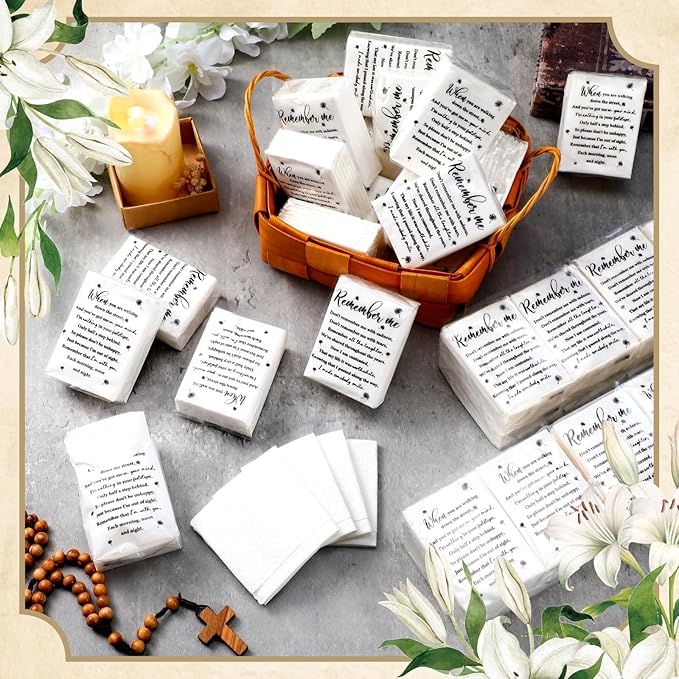 - Easy to Use and Keep Clean: this funeral pocket tissues travel pack has its own opening for easy access and an adhesive sticker on the outside for easy reseal when not in use, keeping the rest of the paper clean, so you can use it with confidence