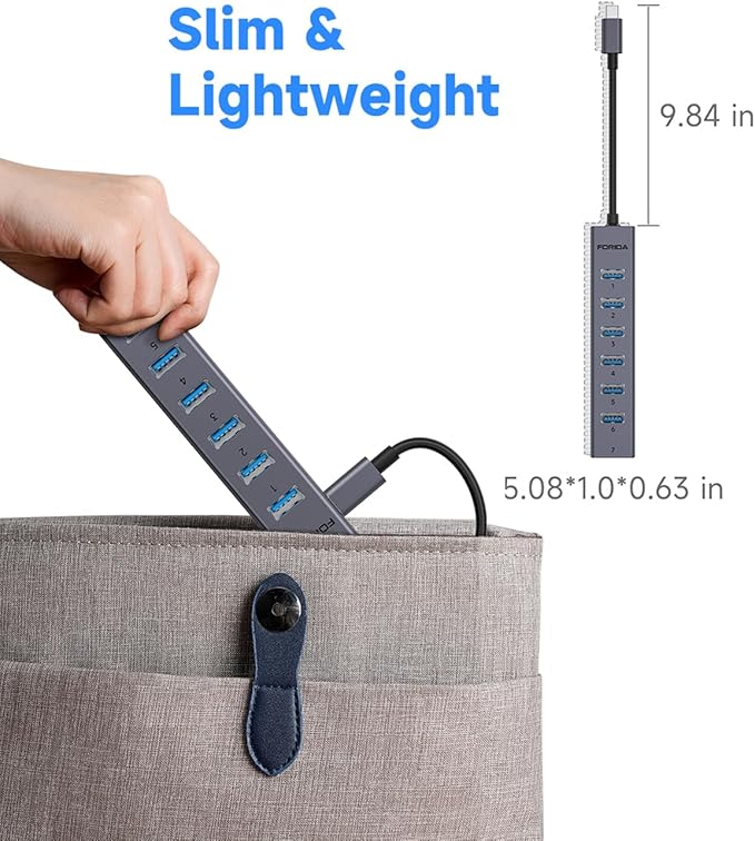 - 【7 USB 3.0-Port Hub】-FORIDA USB C HUB turns one USB port into Seven, support for USB Flash drive, Mouse, Keyboard, Printer, or any other USB Peripherals. And it's backward compatible with your older USB 2.0 / 1.0 devices.