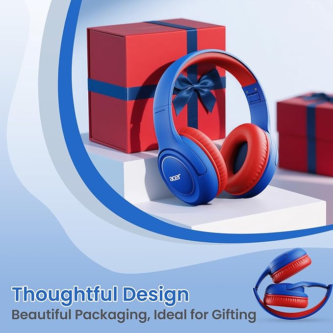 acer Kids Headphones Wired for School - Over-Ear 85/94dB Volume Limiter, 3.5mm Jack Foldable Stereo Sound Headset for Toddlers Girls Boys Travel Learning Entertainment Tablet Kindle iPad PC,Blue Red