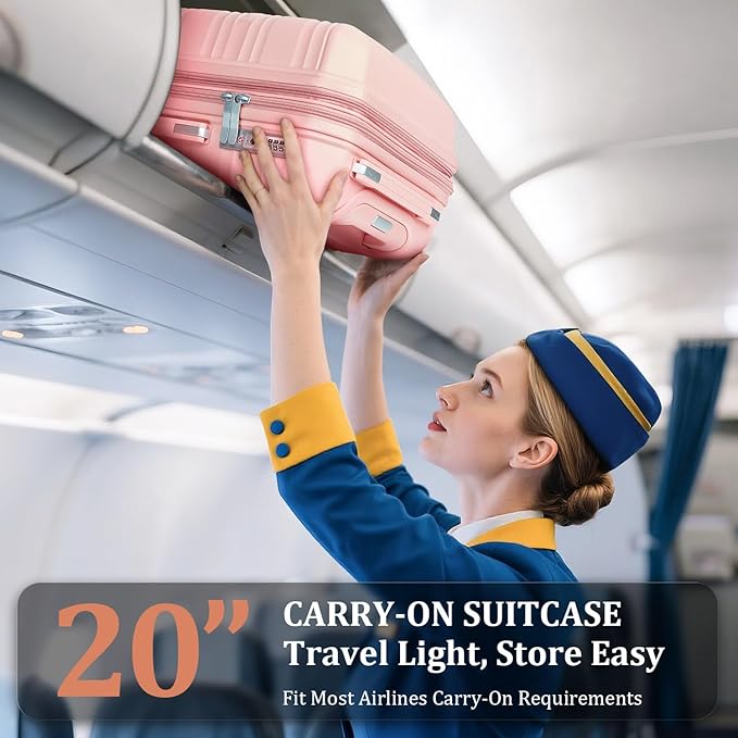 - 20% Extra Space with Expandable Design: The 24" and 28" checked suitcases expand for 20% more packing capacity – perfect for souvenirs. The FAA-approved 20" carry-on fits all overhead bins, while the 14" mini case is ideal for weekend getaways.