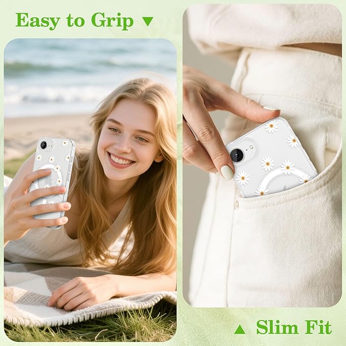 ZTOFERA for iPhone 16e Magnetic Case Compatible with Magsafe, Aesthetic Floral Pattern Design Cute for Girl Women,Anti-Drop Protective Hard Phone Cover for iPhone 16e-Daisy