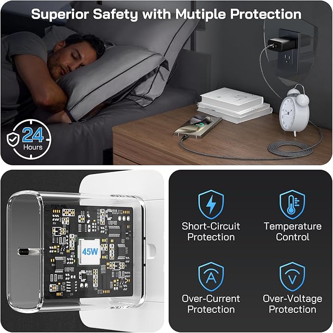 - 【Broad Compatibility of Type C Charger Fast Charging 】This 45W USB C Fast Charger pack fits perfectly for almost any USB-C devices and particularly, provides super fast charging for Samsung, [Super Fast Charging 2.0]: for Samsung Galaxy S25 Ultra/S25+/S24 Ultra/S24+/S23 Ultra/S23+/S22 Ultra/S22+/S20 Ultra/Note 10 Plus, Galaxy Tab S9/S8/Ultra/S7+; [Super Fast Charging 1.0]: for Samsung Galaxy S25/S24/S23/S22/S21/S21+/S21 Ultra/FE 5G/S20+/Note 20 Ultra; [PD Fast Charging]: Mac Book, i Pad, i Phone, Switch...