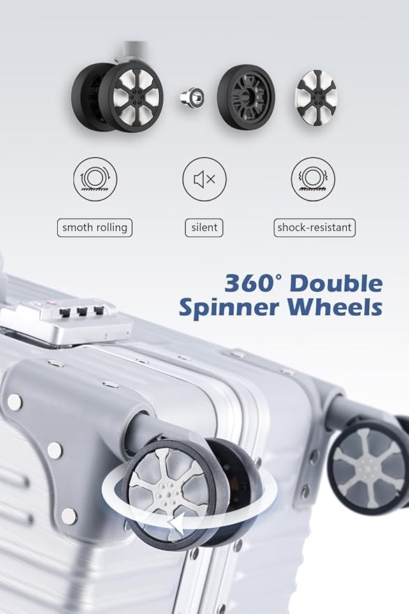 - 360° SMOOTH-GLIDING SPINNER WHEELS: Glide through busy terminals with our four 360° smooth-spinning dual wheels. The multi-directional design evenly distributes weight, providing unparalleled mobility. Ideal for maneuvering through crowded spaces or rushing to catch flights.