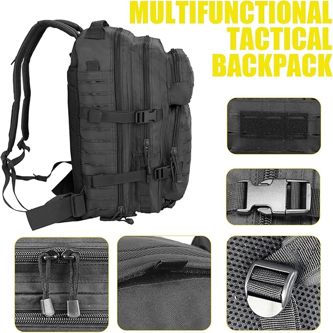 40L Tactical Backpack, Camouflage Military Bug Out Bag, Durable MOLLE Hiking Camping Gear (BLACK)