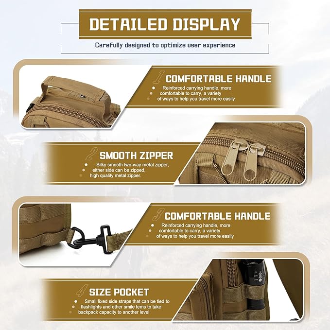 Tactical Chest Pack Backpack, Carry Shoulder Sling Bag for Men, Waterproof Military Cross-body Molle Backpack for Outdoor, Range, Travel, Hiking, Khaki